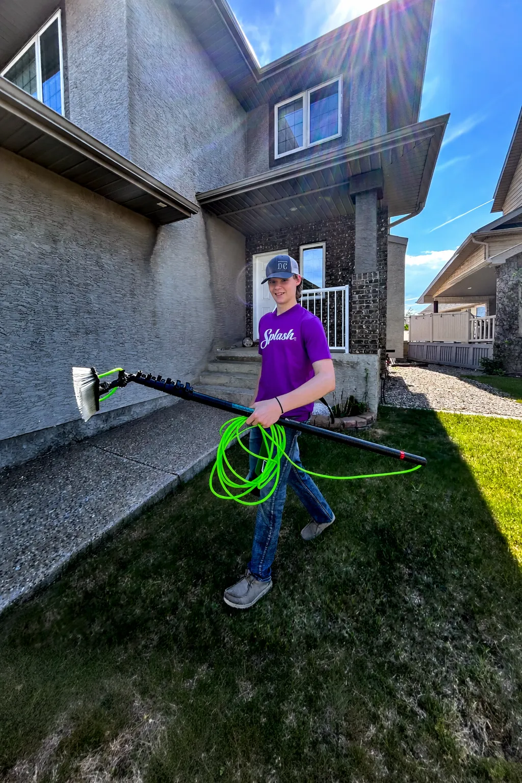 For many homes, we can clean upper windows using water-fed poles with purified water, which allows us to reach high areas safely from the ground. Ladders may still be used when necessary to ensure a thorough clean.